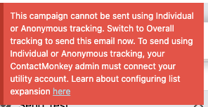 Organizations that are not integrated with any utility accounts for distribution list expansion receive an error when clicking Send Test → "To" Field Contacts in the Outlook 365 Add-in. The error incorrectly instructs users to switch to Overall tracking, regardless of the tracking method they have selected.