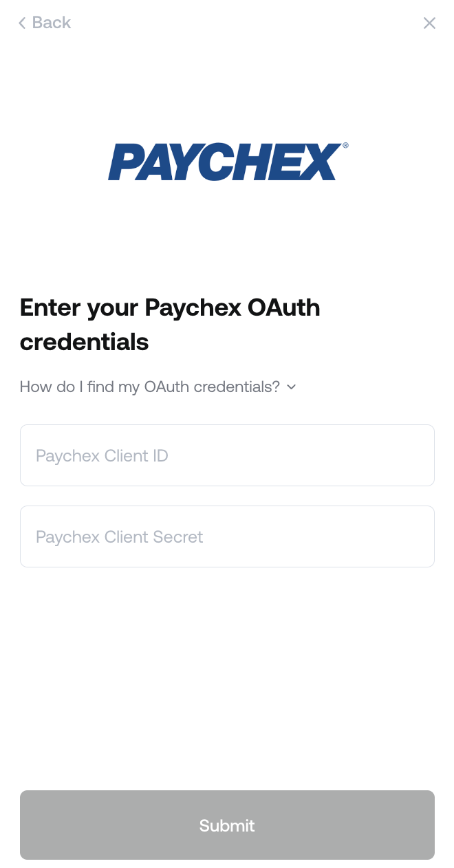 - Make sure you register the app as described in the above guide for the Paychex parent account