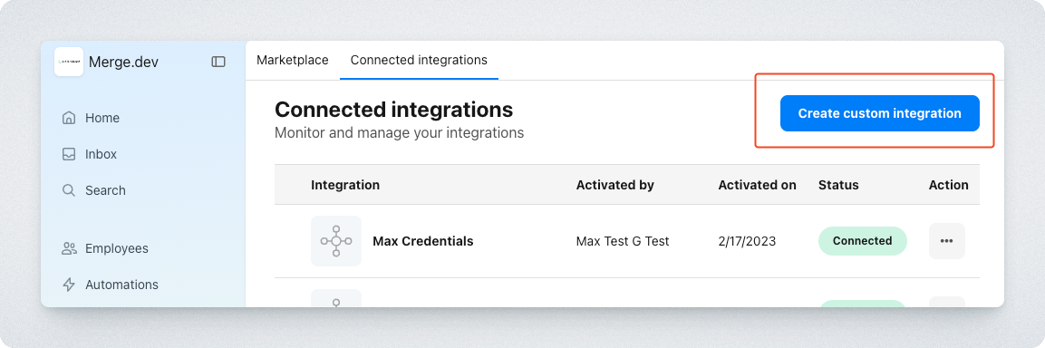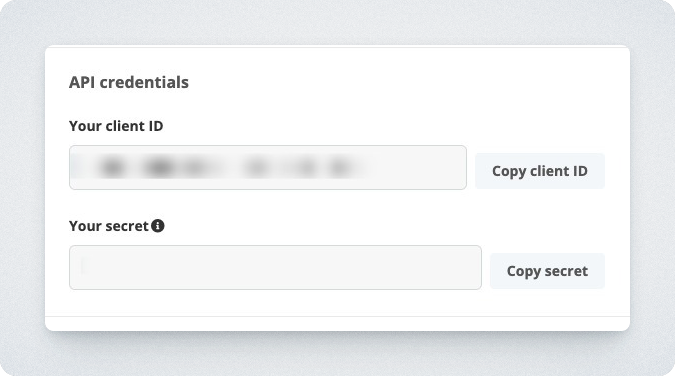 - Click Create integration once done. You will then see your API Credentials populate. Copy and save these in a secure place.
