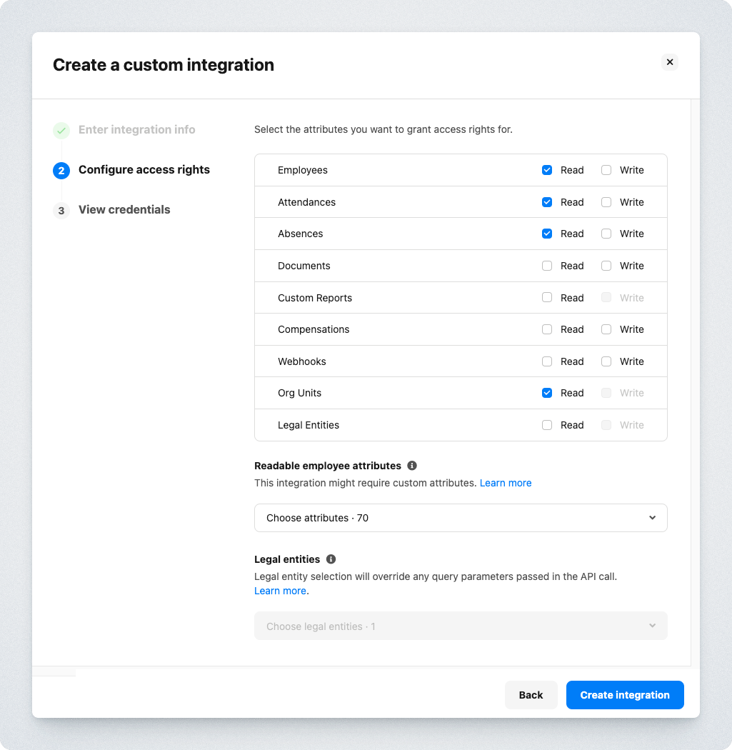 - Under Readable employee attributes, click select all or select the individual fields you want to sync. Commonly used fields include:
