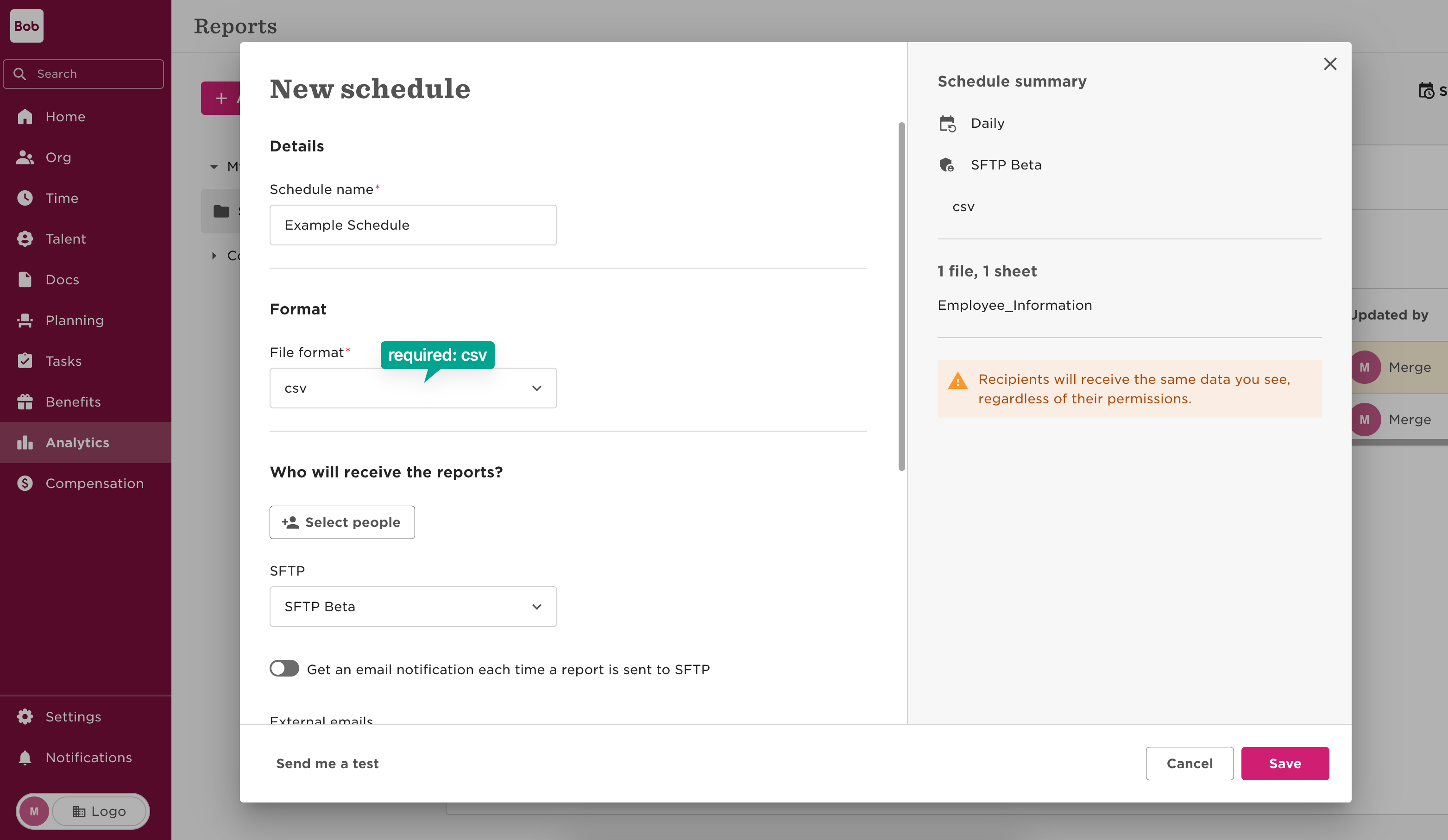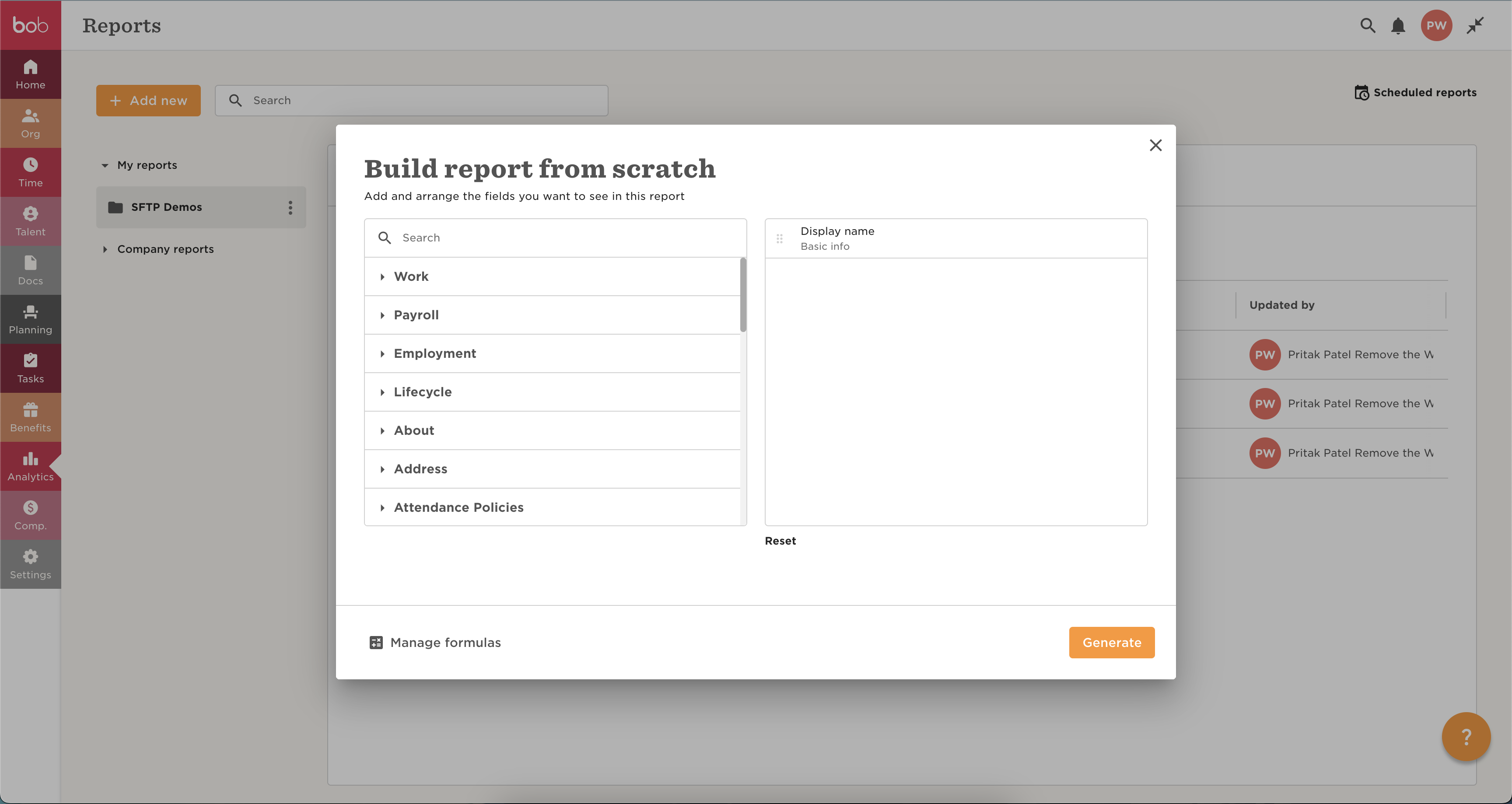 In this guide, you will be given detailed instructions on how to create a custom report in HiBob with fields that you want to include for your use case.