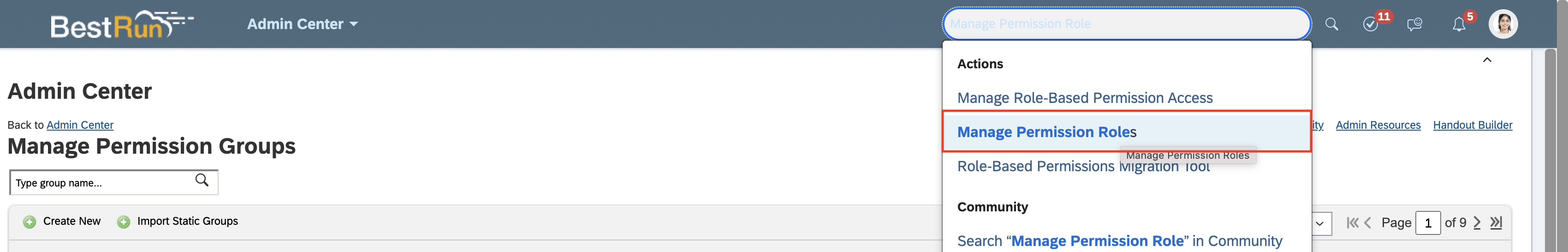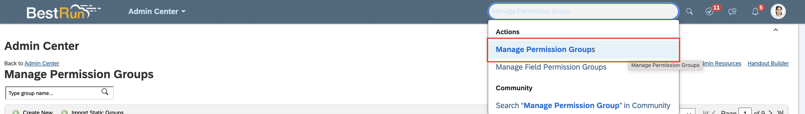 - Search up Manage Permission Groups in your search bar to navigate to the Permission Groups page.