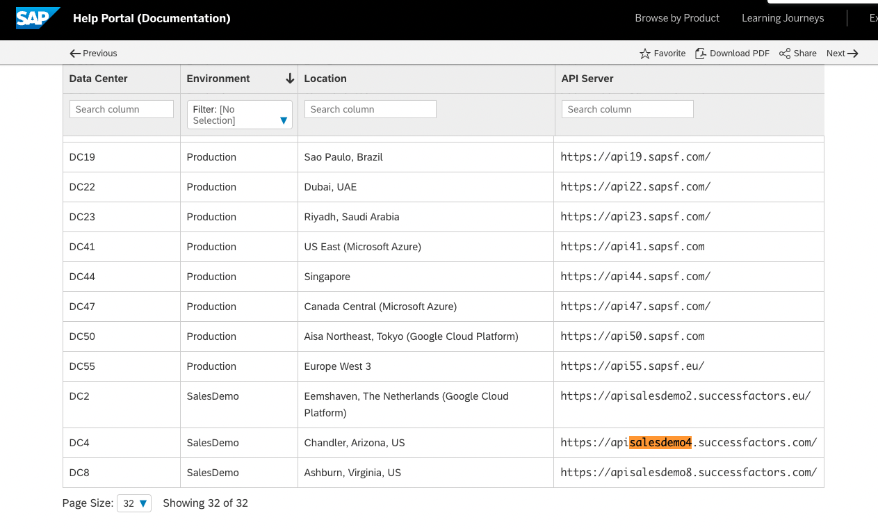 - To find your API Server URL, navigate to the list of SAP SuccessFactors API Servers