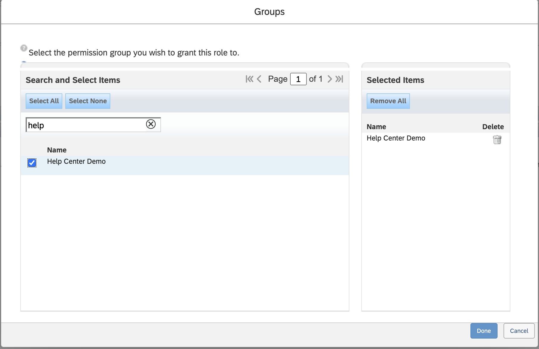 - Click Done to create and save this Permission Group.