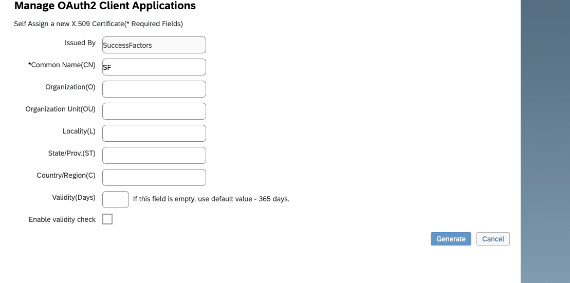 - Click Generate X.509 Certificate. Fill out Common Name (name doesn't matter) and hit Generate.