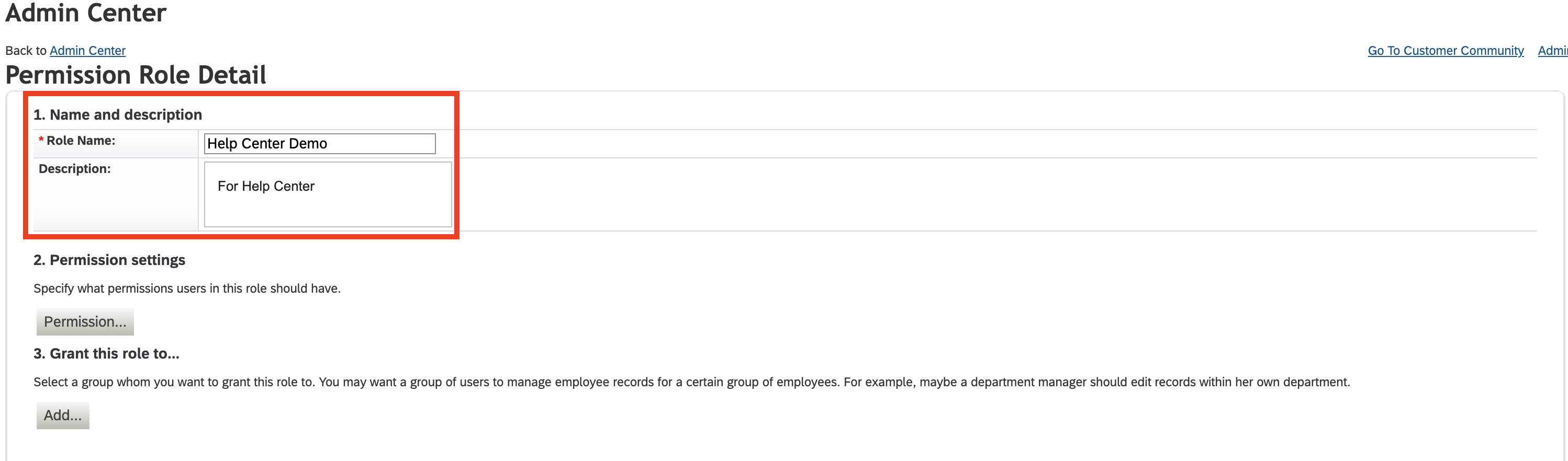 - After setting the permissions, add the Permissions group you created in Step 2 to the role by clicking Add