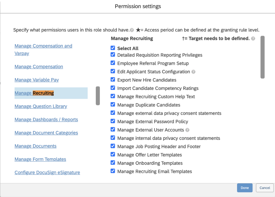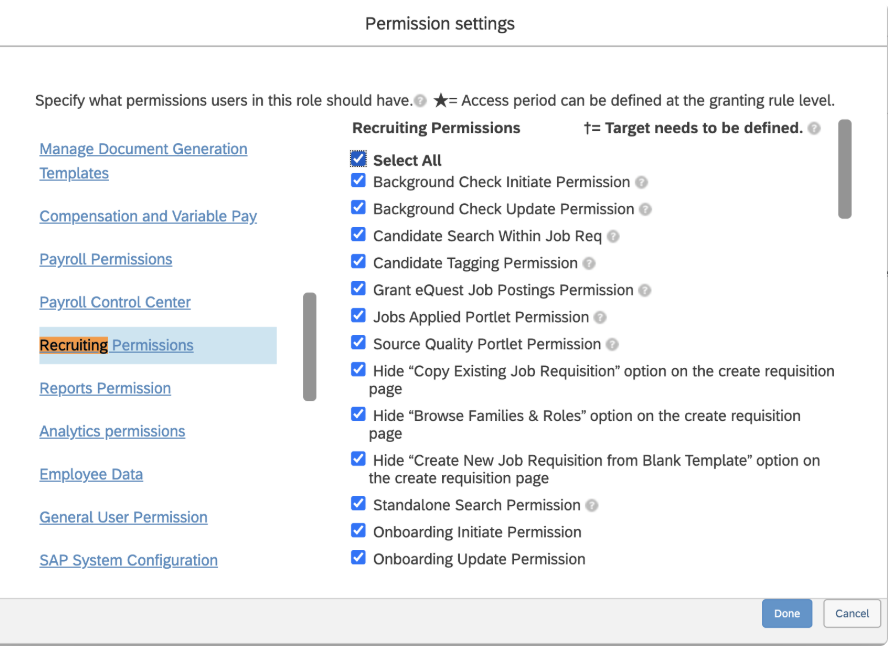 - Manage Recruiting - this allows for access to SAP Recruiting Data
