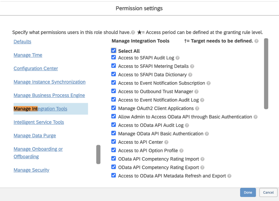 - Identify and select the permissions that matter for the use case you are trying to achieve. Details below:
