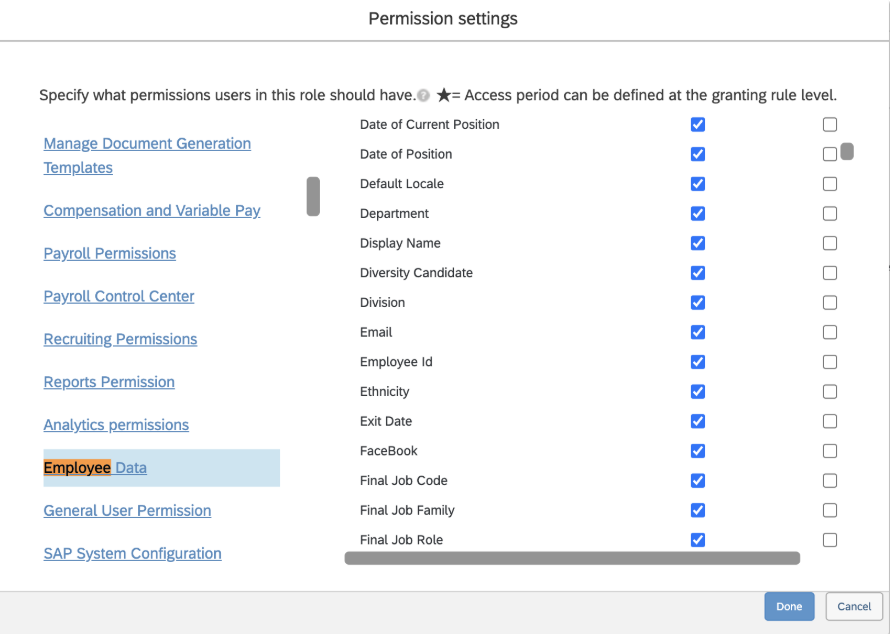 - Employee Data - this allows for View Access to Employee Information