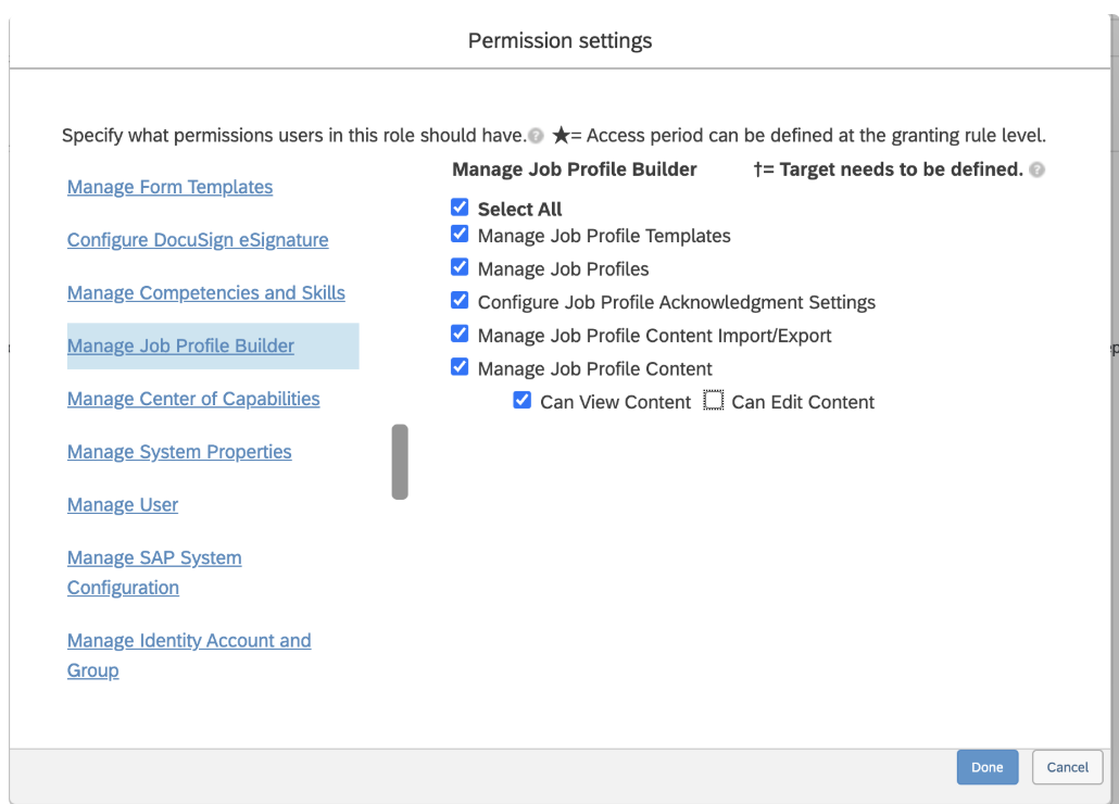 - Manage Job Profile Builder - this allows for access to Job information